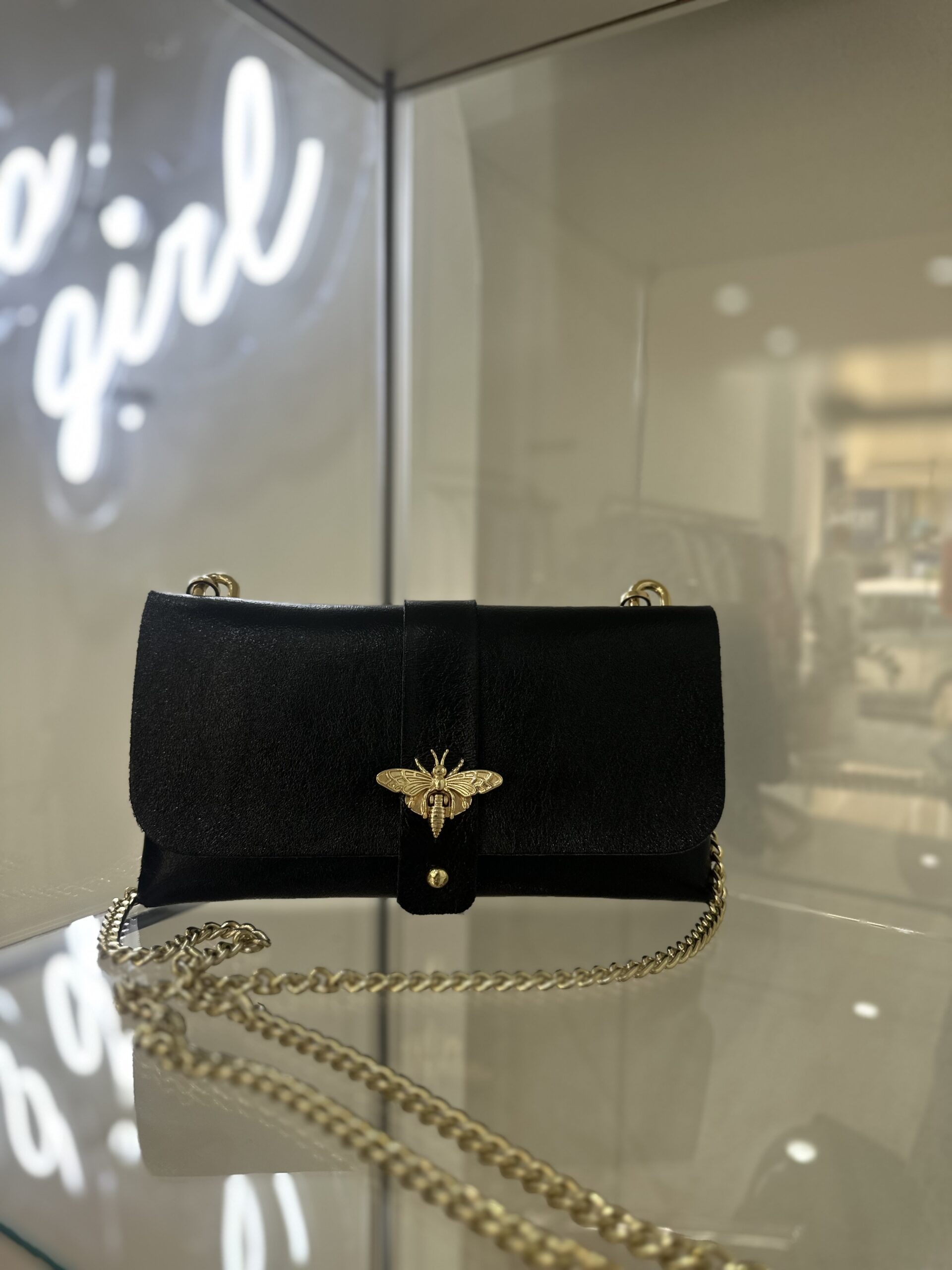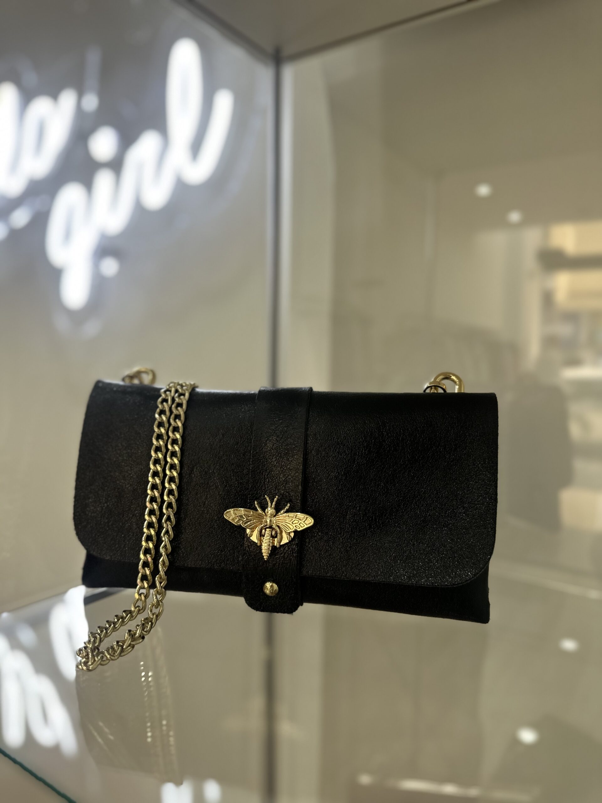 •Τσαντάκι τύπου φακελος,με χρυσή λεπτομερεια και χρυσή αλυσιδα