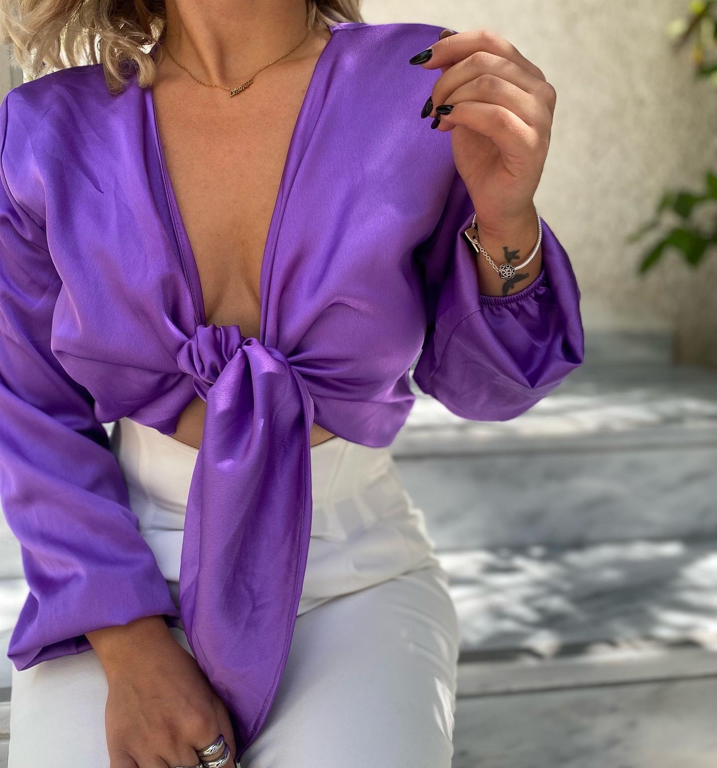 •Τοπ μακρυμάνικο σατεν •Διαθέτει λάστιχο στα μανικια •Το δεσιμο προσαρμόζεται •Onesize,καλύπτει έως και large