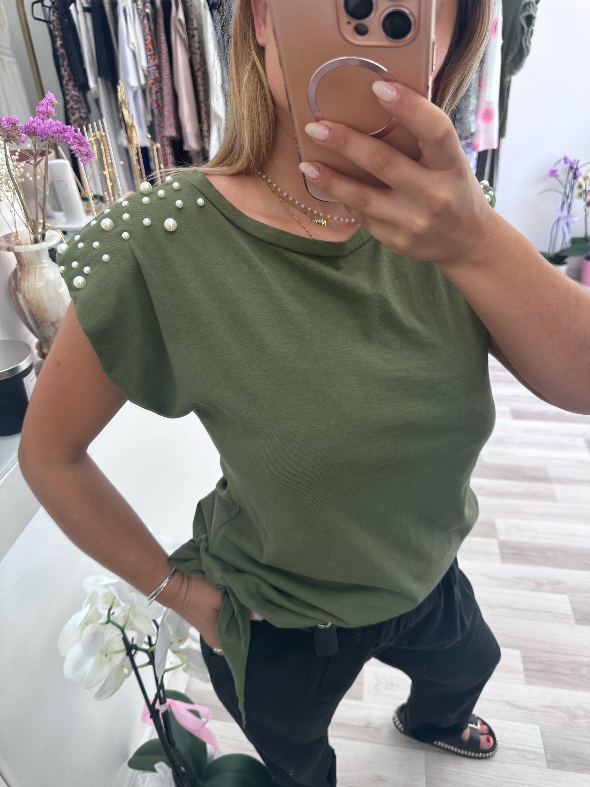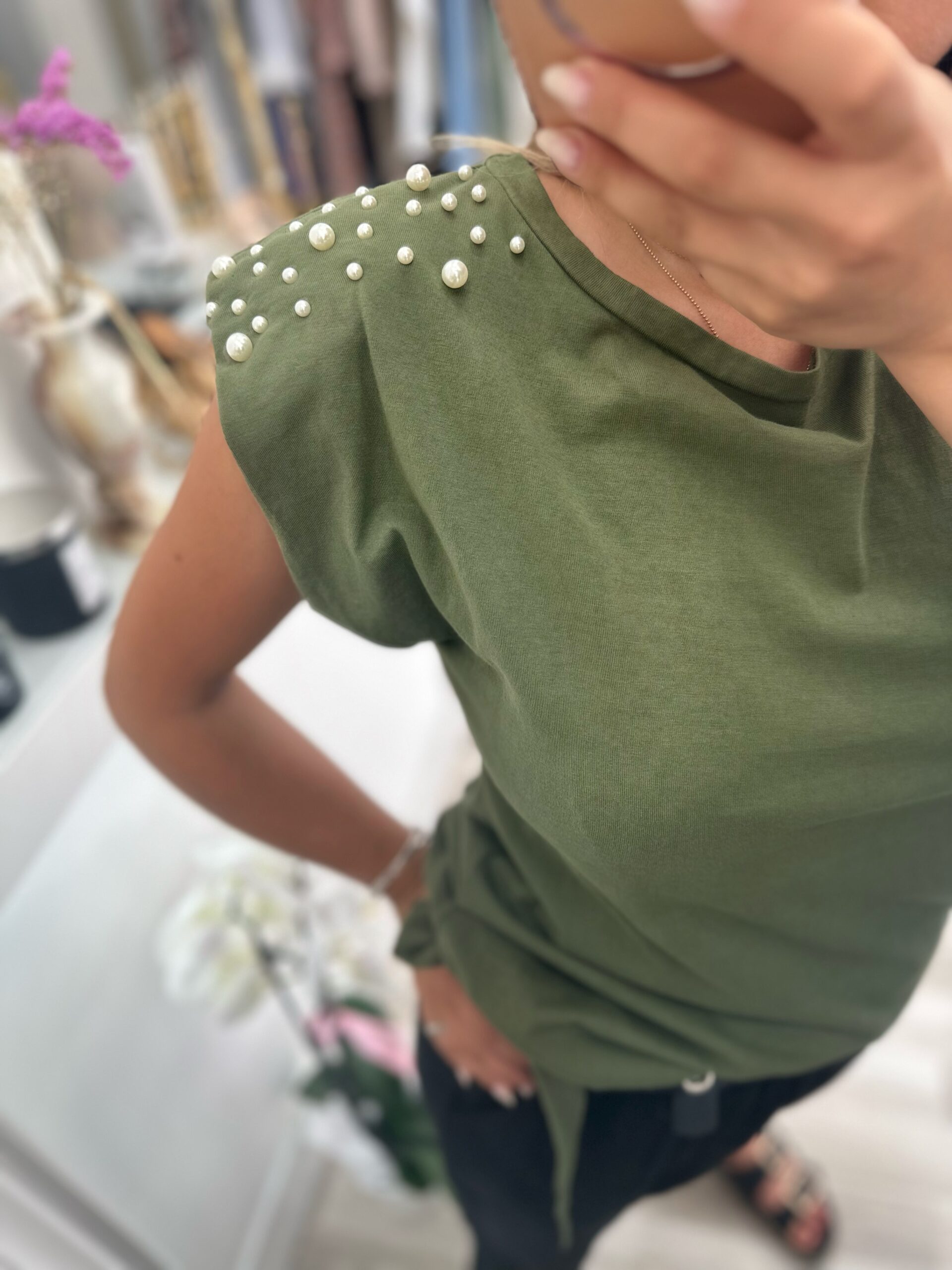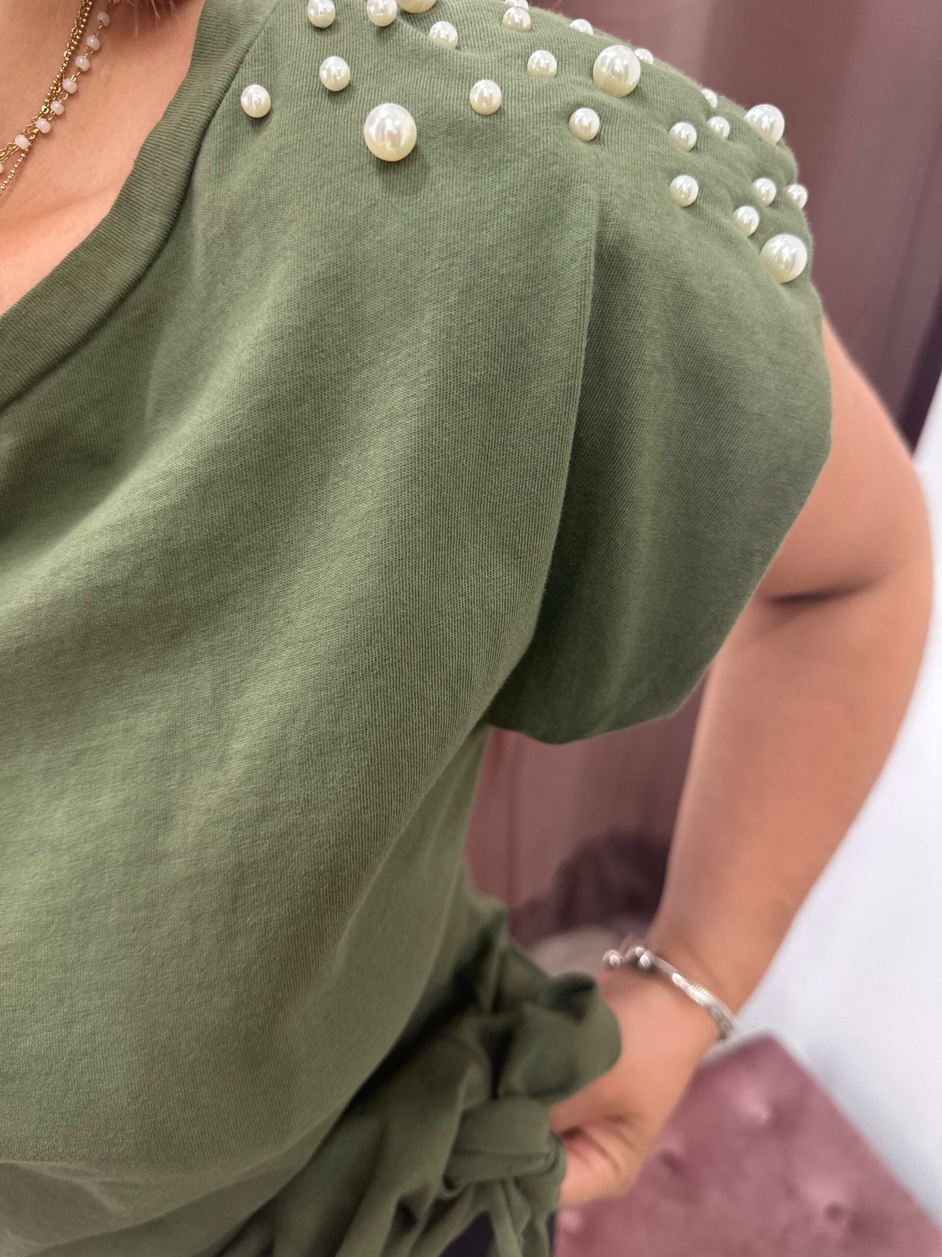 Βαμβακερη μπλούζα με βάτες και μαργαριταρακια(καρφωτα)στον ωμο